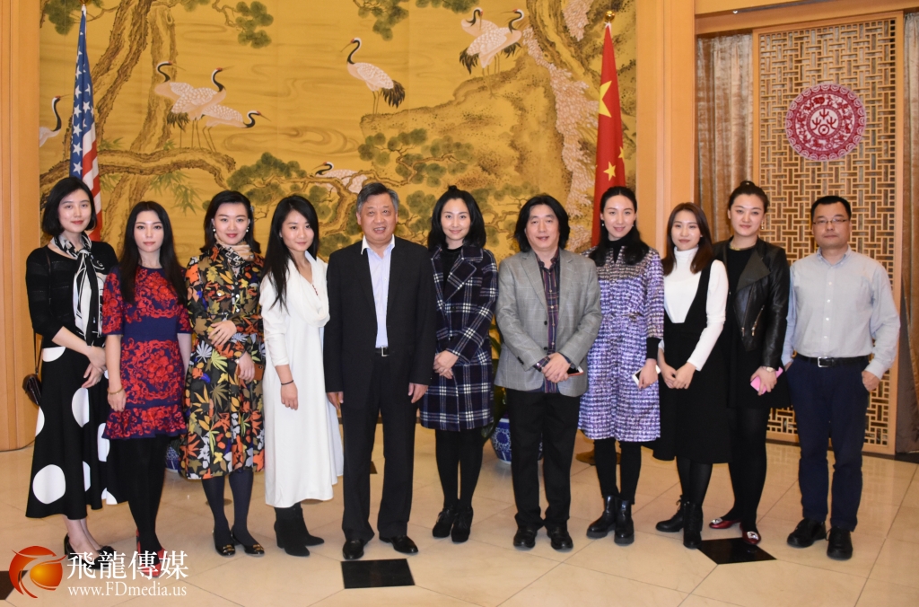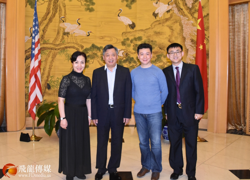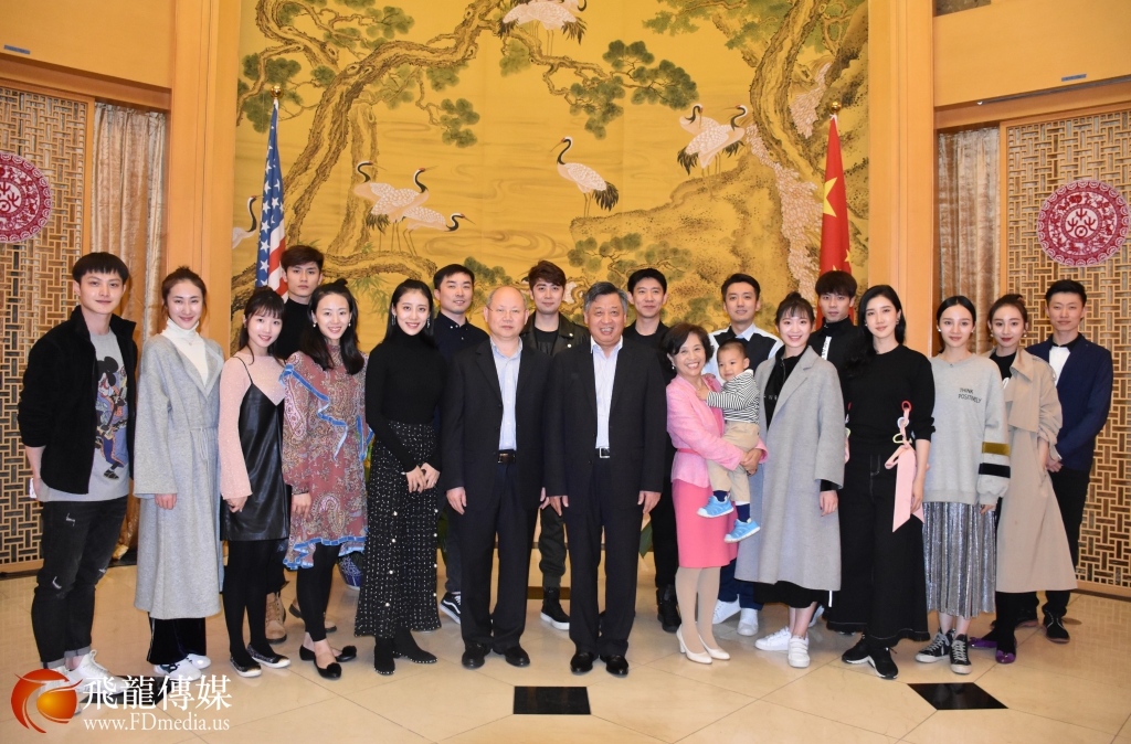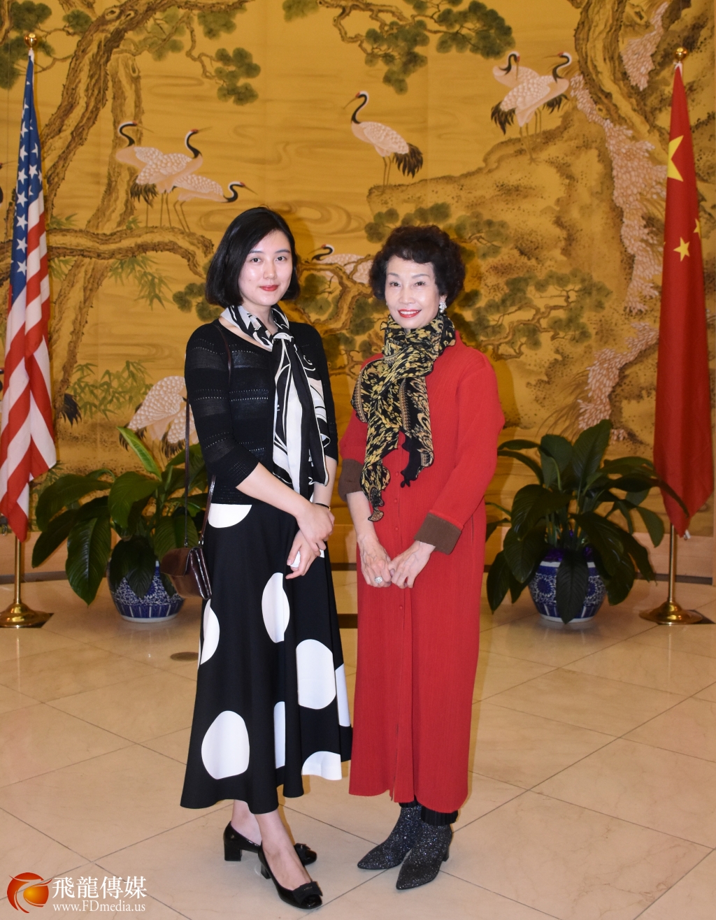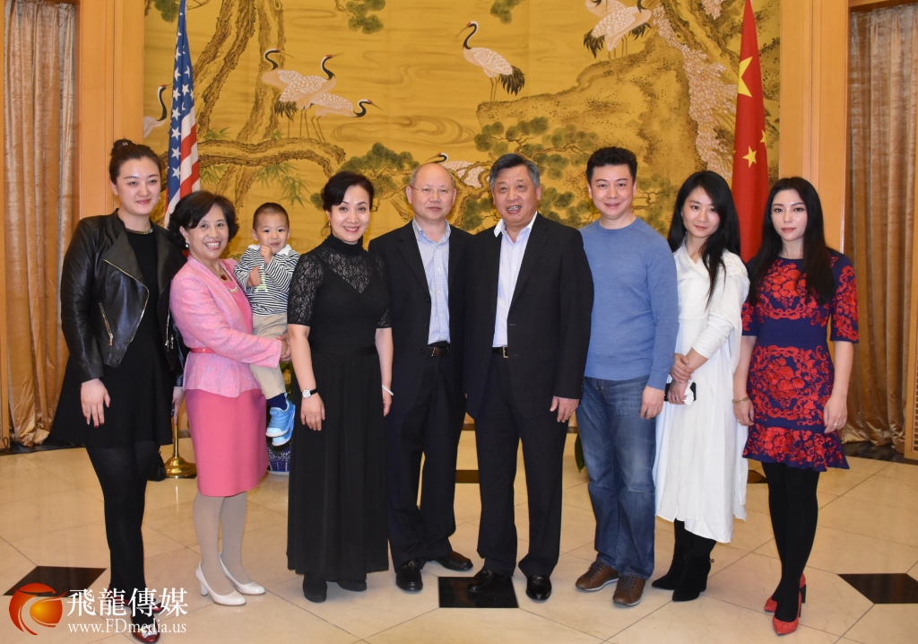 东方歌舞团 艺术家于秋实与阎维文的夫人在总领馆李强民总领事官邸合影留念。(小珑 摄影)