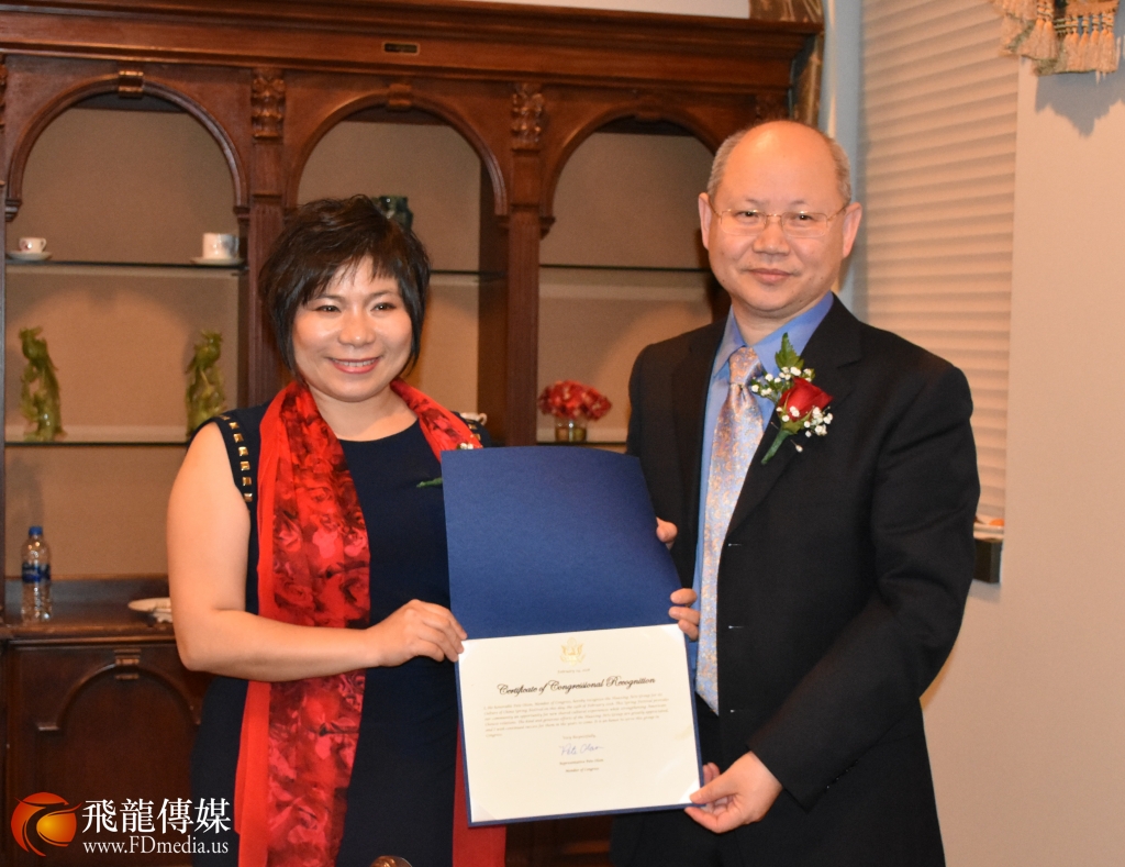 图左:美国国会议员Pete Olson 亚裔助理张晶晶、图右: 国务院侨办秘书行政司张永文司长。