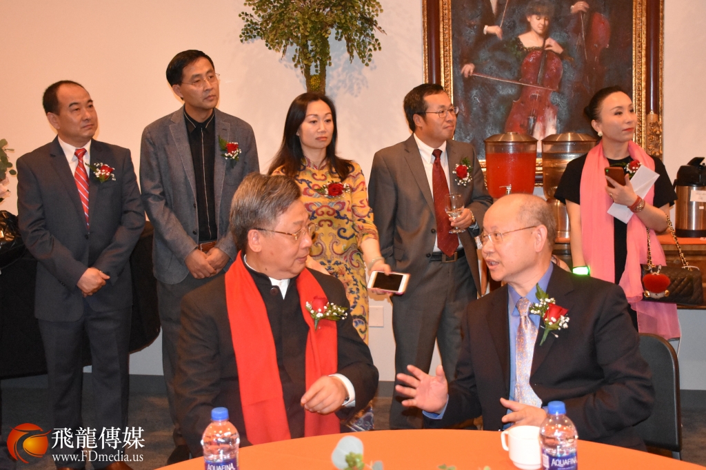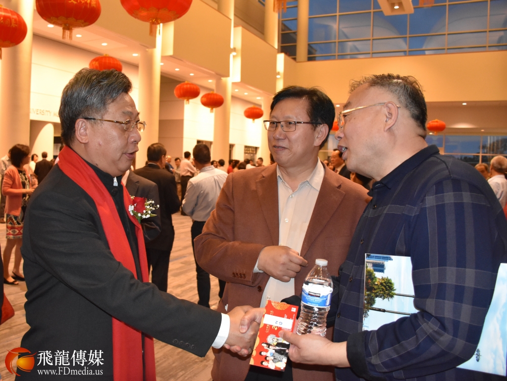 在演出前,华星艺术团举行了一个小型的招待会,感谢为这次演出做出贡献的赞助单位。招待会上美国国会议员Al Green亚裔助理谭秋晴、国会议员Pete Olson 亚裔助理张晶晶,均送来国会议员对访问团的褒奖状,感谢《文化中国 · 四海同春》访问团为中美文化交流做出的贡献。