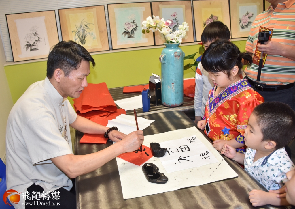 著名书法家黄鑫现场教孩子们写“福”字
