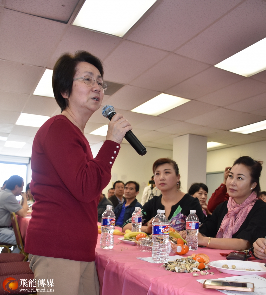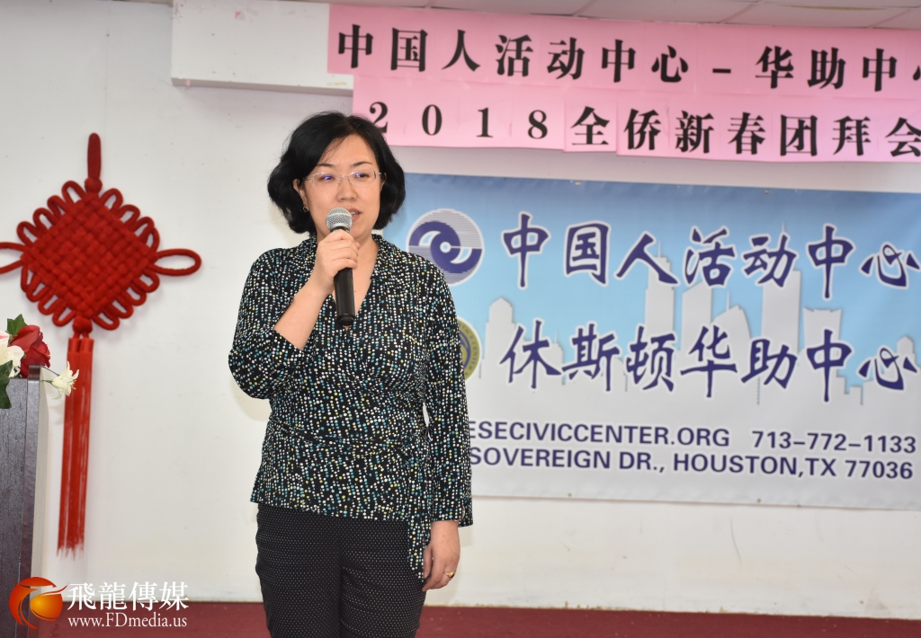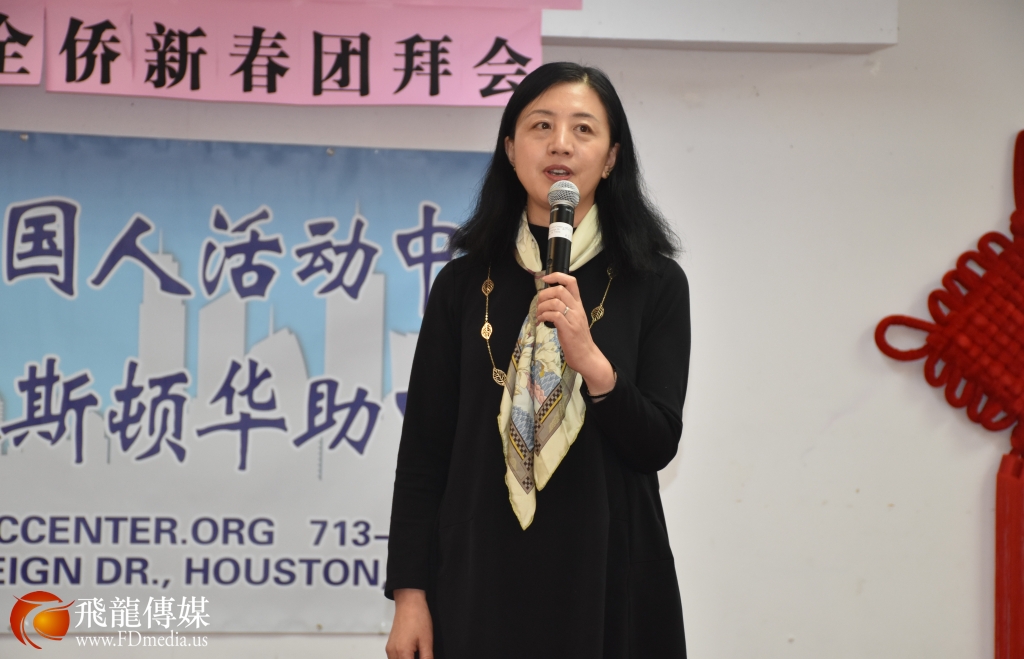 休斯敦华星艺术团团长 鲍玲 在团拜会上发言。