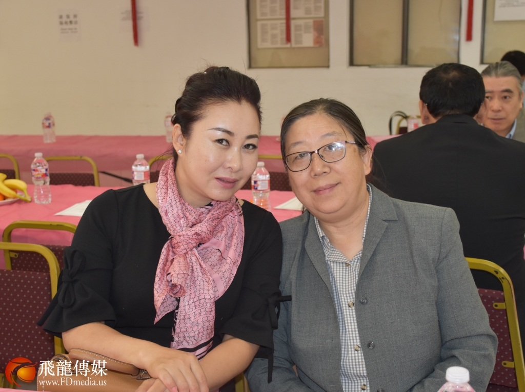 大连同乡会会长李懿珈(左)、天津同乡会会长陈婷(右)参加团拜会。