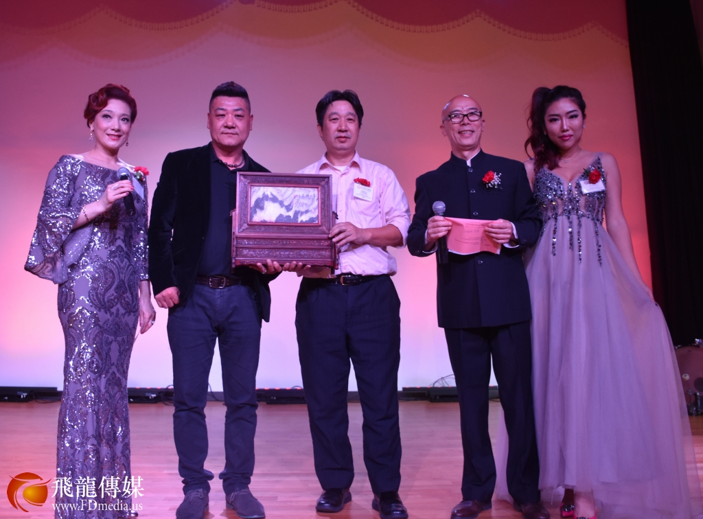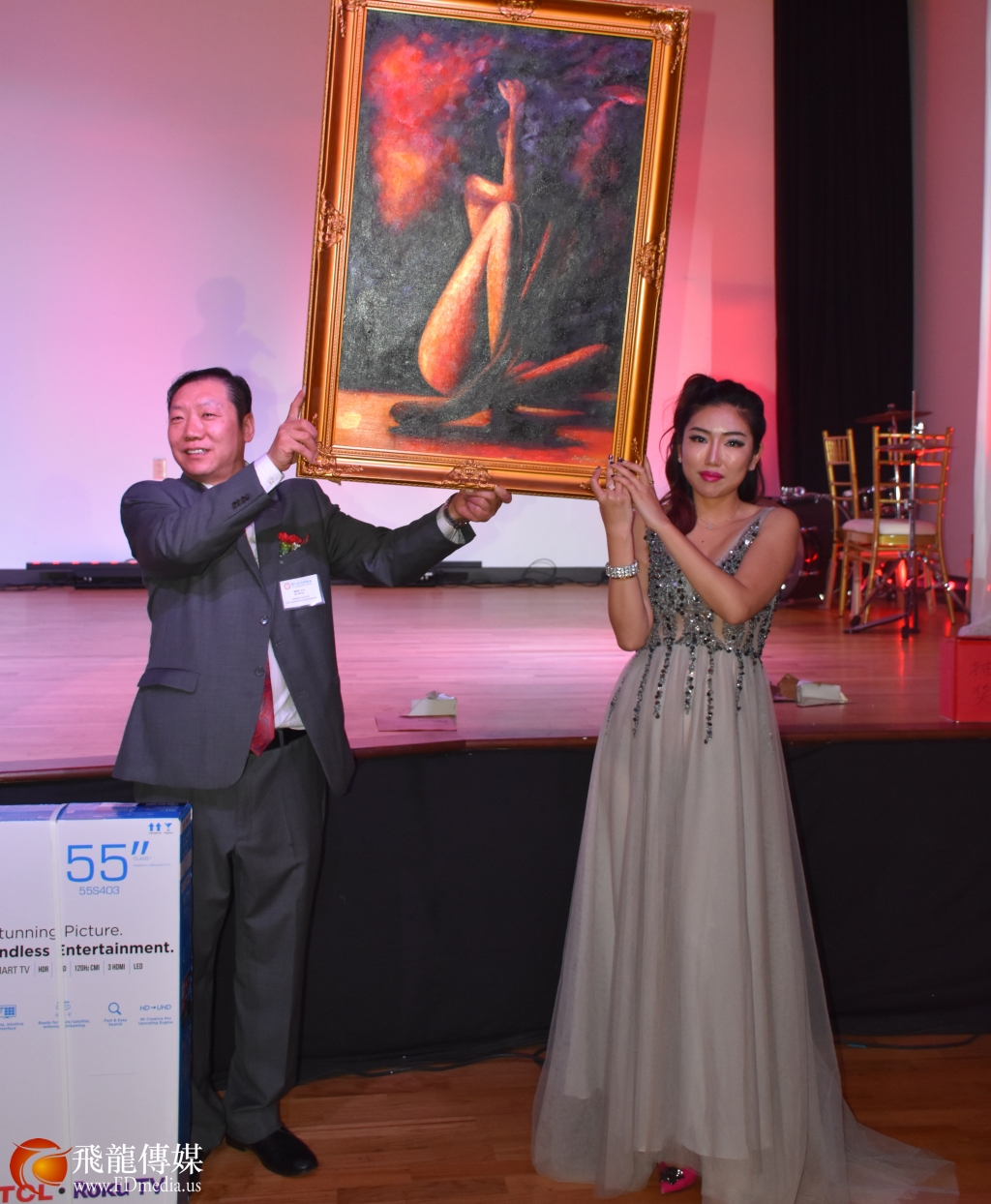 全景中国电影节主席蒋锐捐赠的他亲自画的一幅作品,以3千美金被腾龙教育学院校长俞晓春拍得。