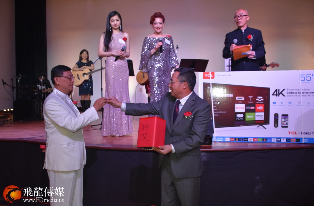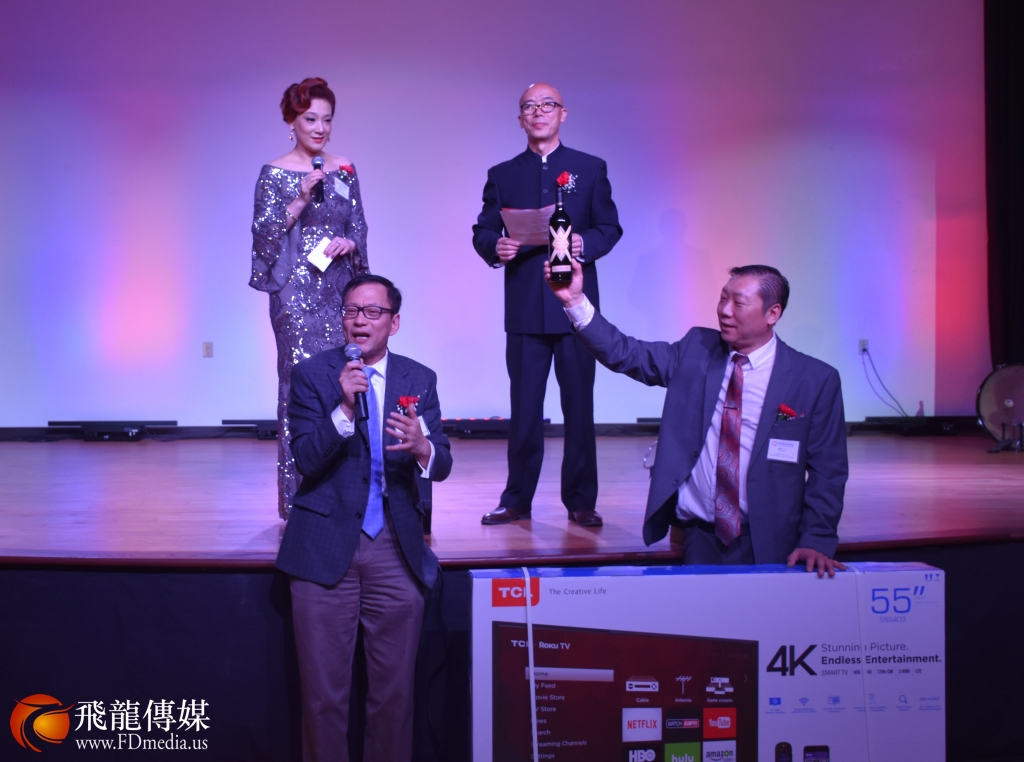 亚商会前会长 赵紫鋆(右)为活动抽当晚最大的奖55寸彩色电视。