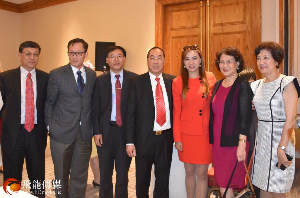 图左起:金融家杨万青博士、休斯敦西南纪念医院副院长丰建伟、中国人活动中心执行长范玉新、亚美集团董事长陈灼刚、美国飞龙传媒负责人陈铁梅、休斯敦大学教授邹雅丽、著名影星文化使者陈烨一起合影留念。