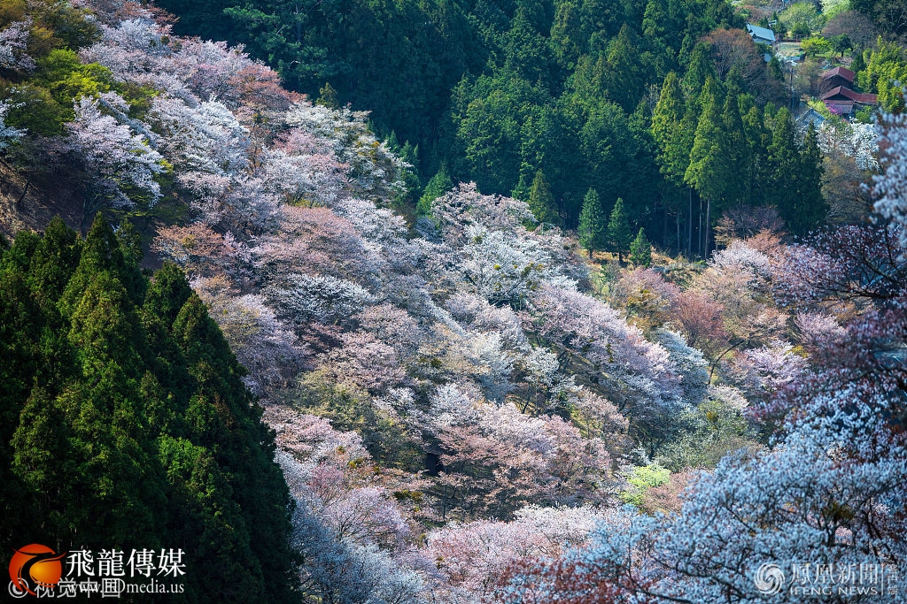 奈良县吉野山以樱花而闻名,有日本第一之誉,春天来时,粉红色的樱花开满山野,被称为“吉野千本樱”。