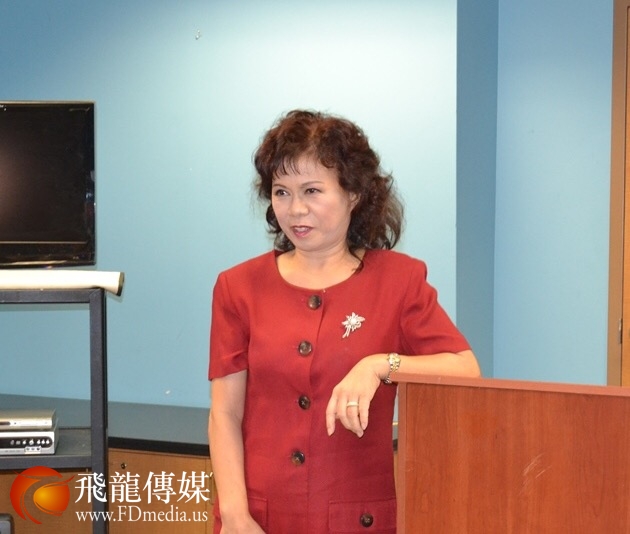休斯顿华星艺术团团长鲍玲介绍举办“辣妈大赛”的意义