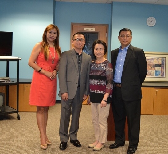 - 左起:辣妈大赛总策划陈铁梅、好运地板董事长Denny Pan、华星艺术团团长鲍玲、本届辣妈大赛评委杨万清合影。