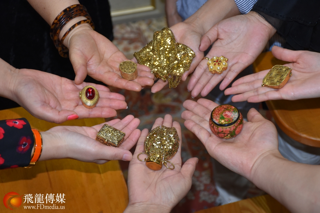 古董拍卖公司总裁、著名古董收藏家吴因潮把收藏多年的欧洲18世纪的贵妇小首饰系列总送给来宾作纪念。