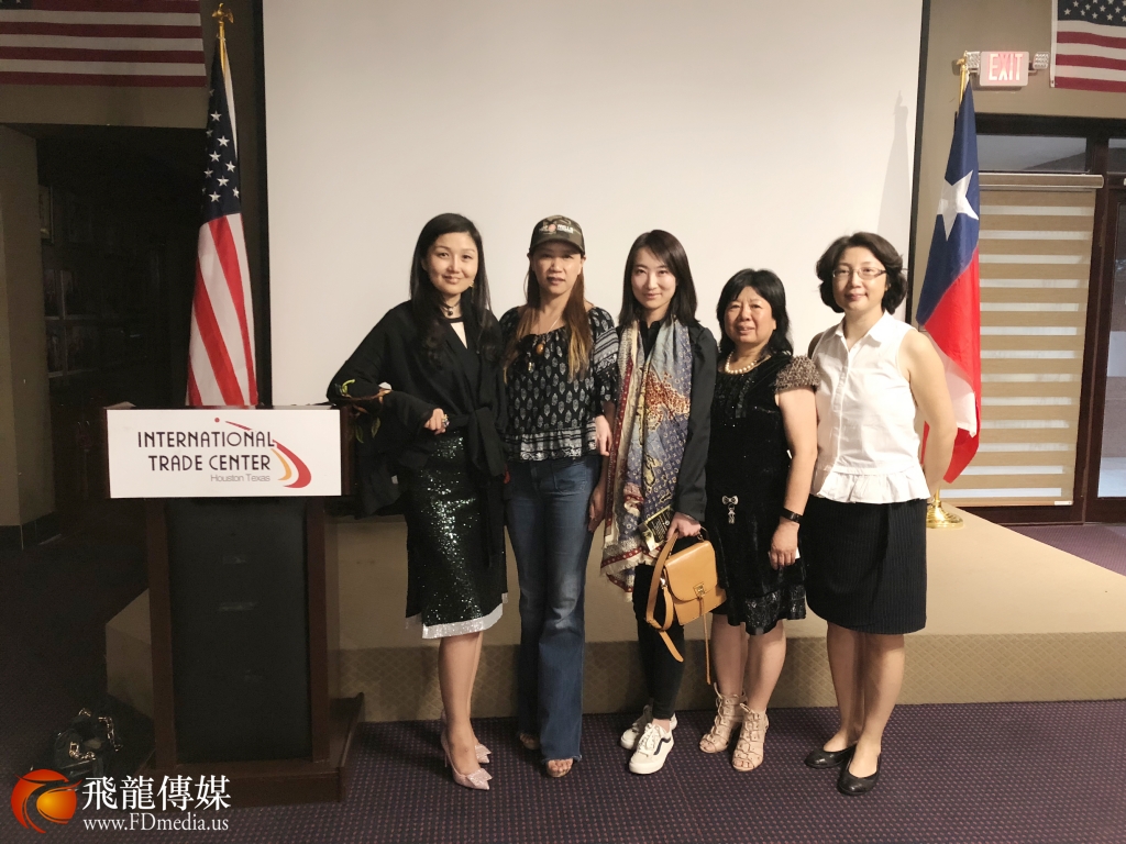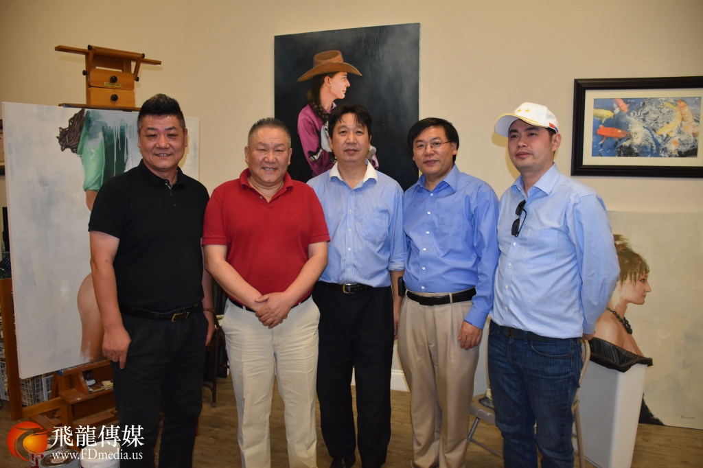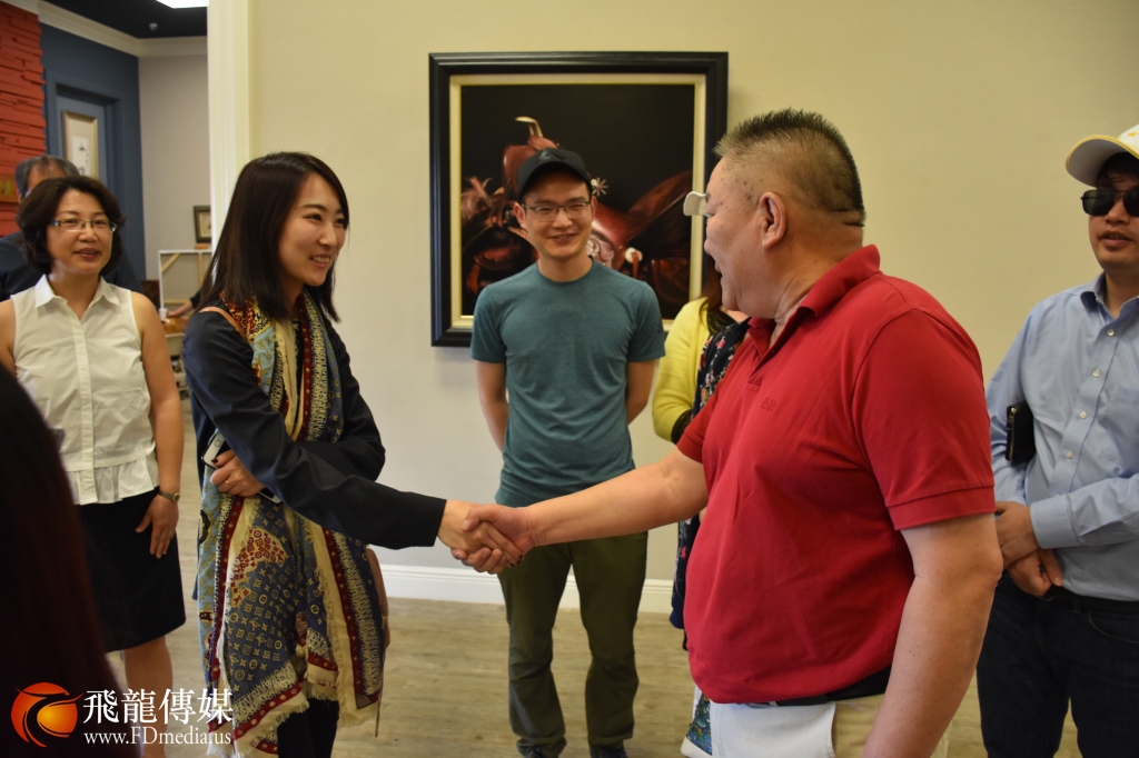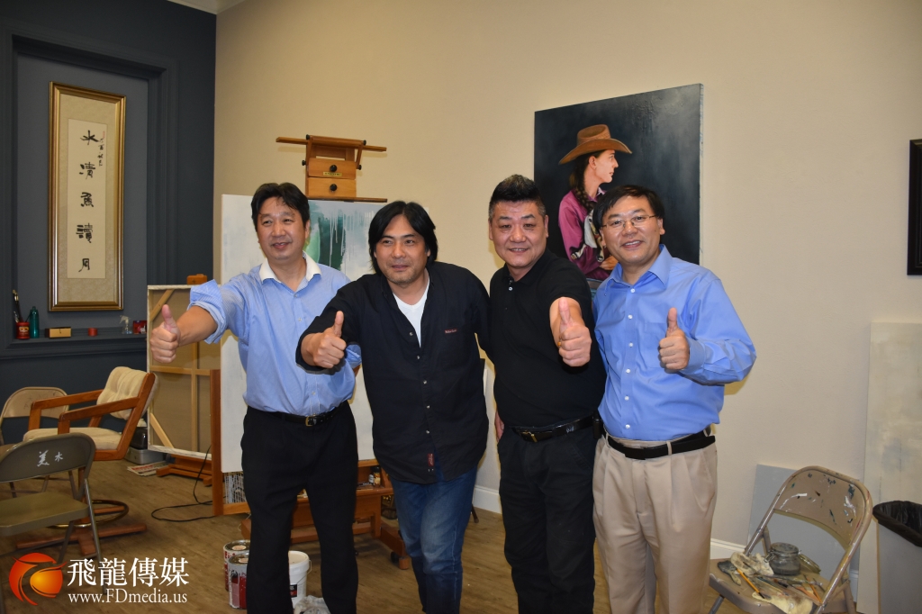 当晚,《水墨大别山》制片人和编剧刘芸畅和导演在画家陶文君、如芳的陪同下到美国飞龙国际文化传媒集团参观。