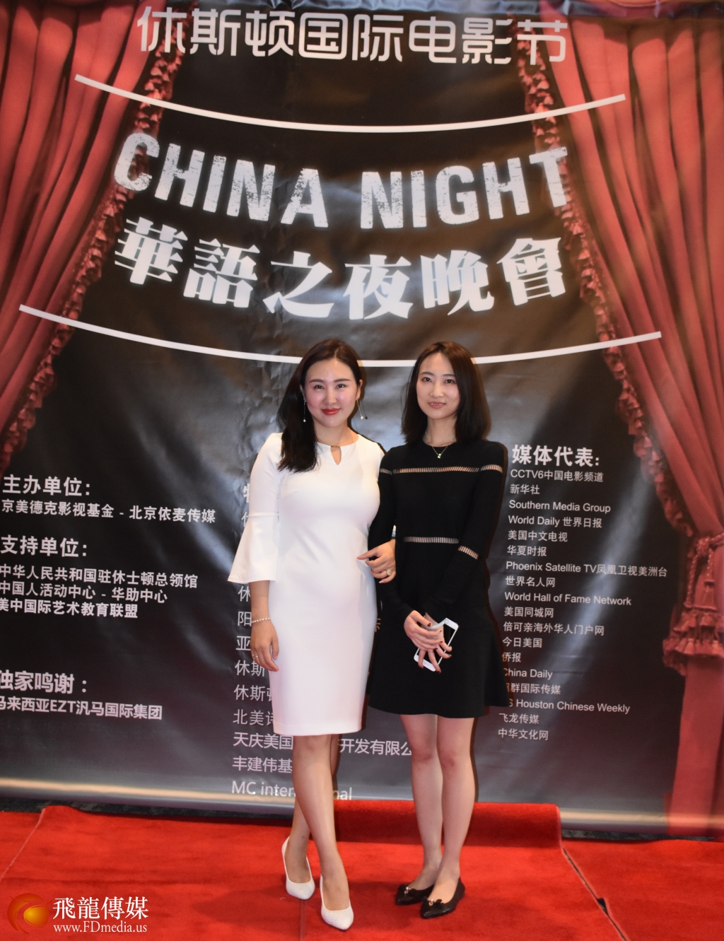 电影节《聚焦中国》共同主席孙婷与休斯敦幸福读书会会长陈霞在红地毯上合影。