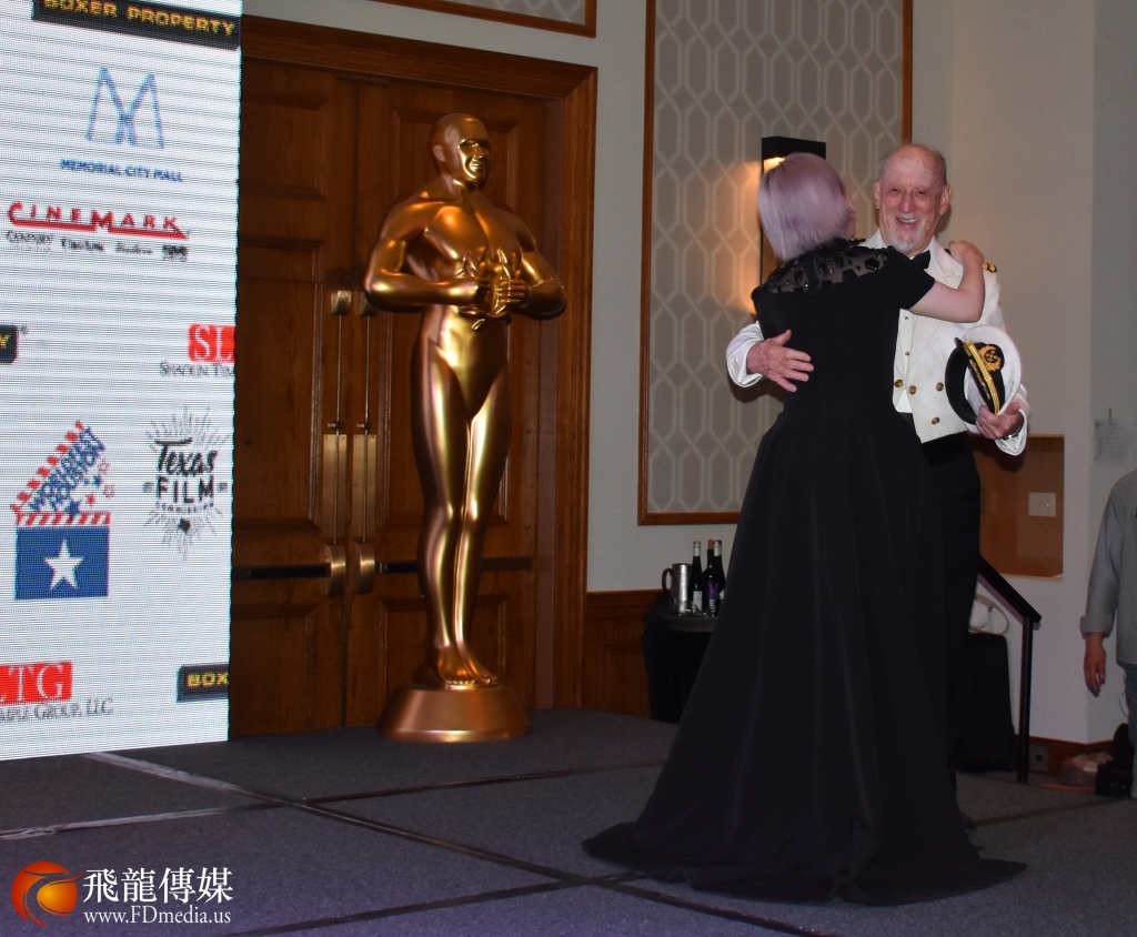 电影节主席Hunter Todd给萱萱大拥抱,感谢萱萱特别从中国飞来休斯敦为电影节添彩。