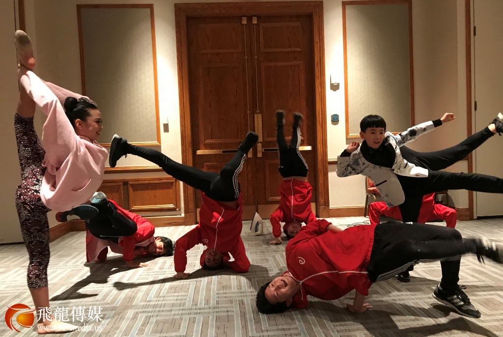 东方艺术教育学院的学生在晚宴表演 Hip hop 。