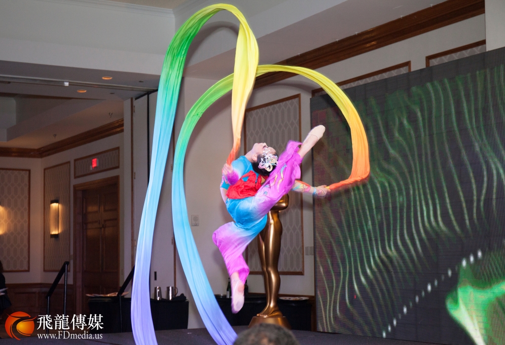 东方艺术教育学院的学生 Diana Feng 在晚宴表演 长绸舞。