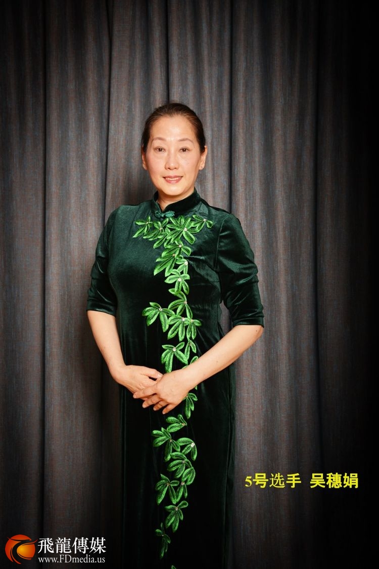 5号选手:吴穗娟Juan(优雅组),来自中国广州,有一个女儿,我热爱生活且享受生活,喜欢一切美丽的事物,女人应随着年龄增大、阅历的增多而更要抓住美丽、令自己风韵犹存,身穿旗袍的女性最能凸显中国女性的韵味,也能体现贤内助好妈妈的美丽成熟的女性形象。