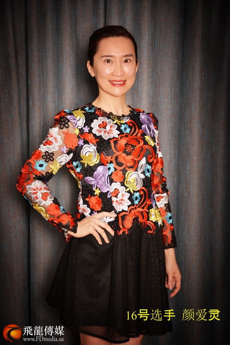 16号选手:颜爱灵Aileen Yan(优雅组),作为三个孩子的母亲,我明白女子除了努力工作,照顾好家庭,还应会生活,提升自我,活出自己,希望自己心态阳光,遇事乐观,浑身散发着暖暖的正能量,到年长依然有明媚笑容。