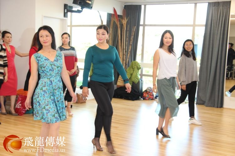 辣妈选手们在Bryan老师的示范指导下认真的做着台步练习。