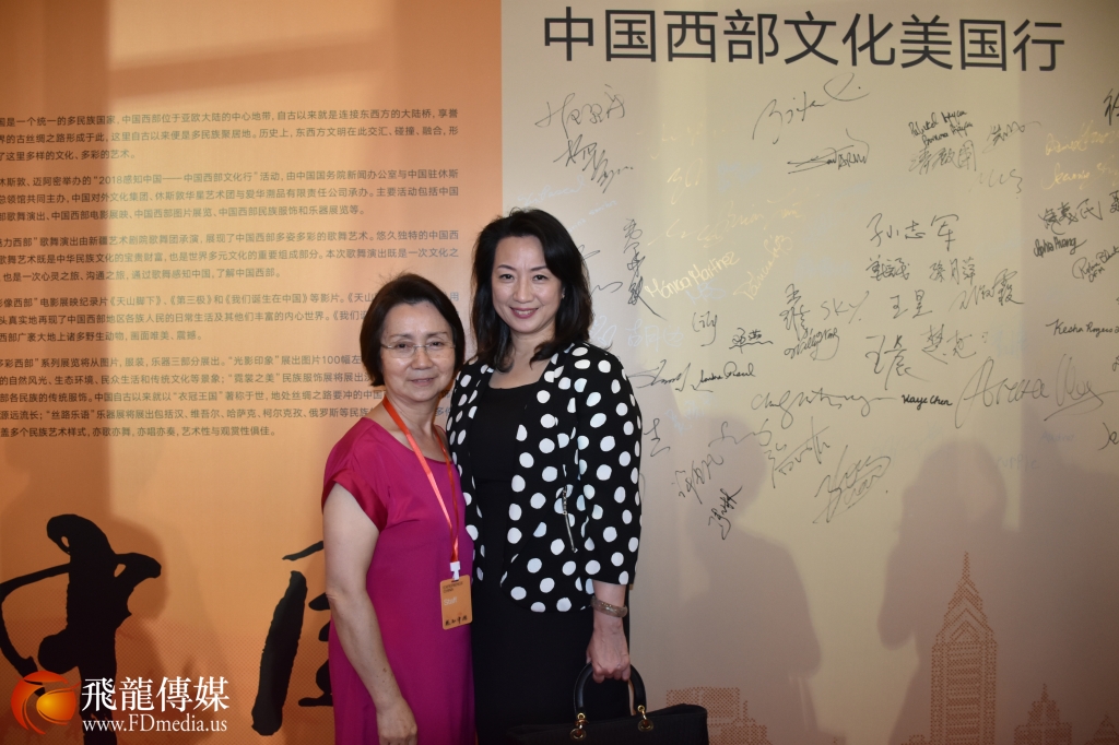本次休斯敦华星艺术团承办《2018感知中国-中国西部文化美国行》活动。左起:华星艺术团新闻总监陈铁梅、钟玲老师、笑琳老师。