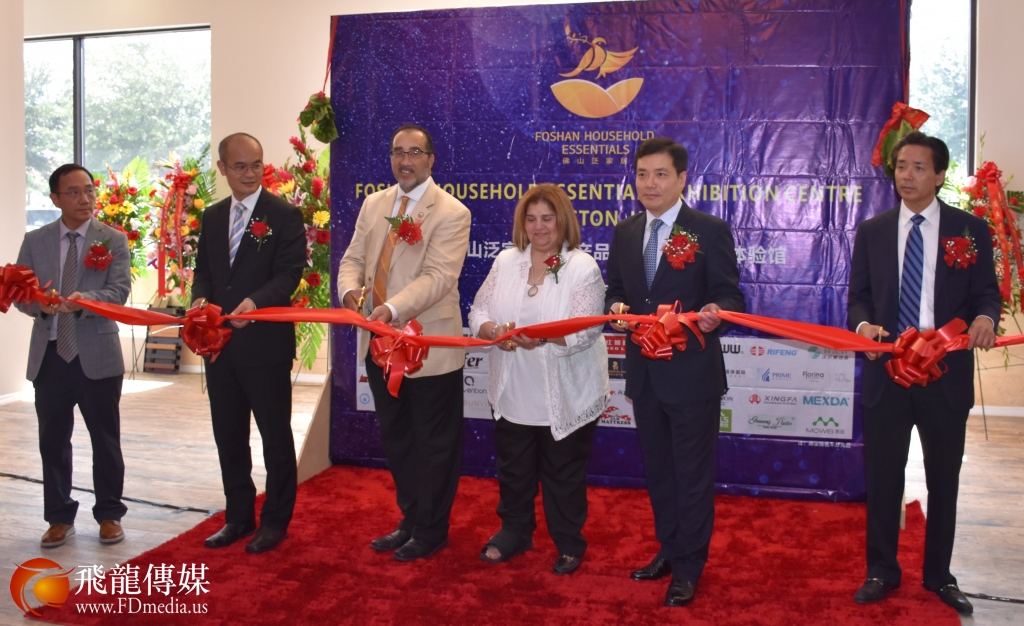 本次展示是由佛山市副市长乔羽率领的佛山市工商局局长李灿、佛山市商务局副局长李竟滦、佛山市禅城区经济和科技促进局局长李凯一行的佛山政府代表团亲自到场为佛山泛家居体验馆在休斯敦开幕剪彩。