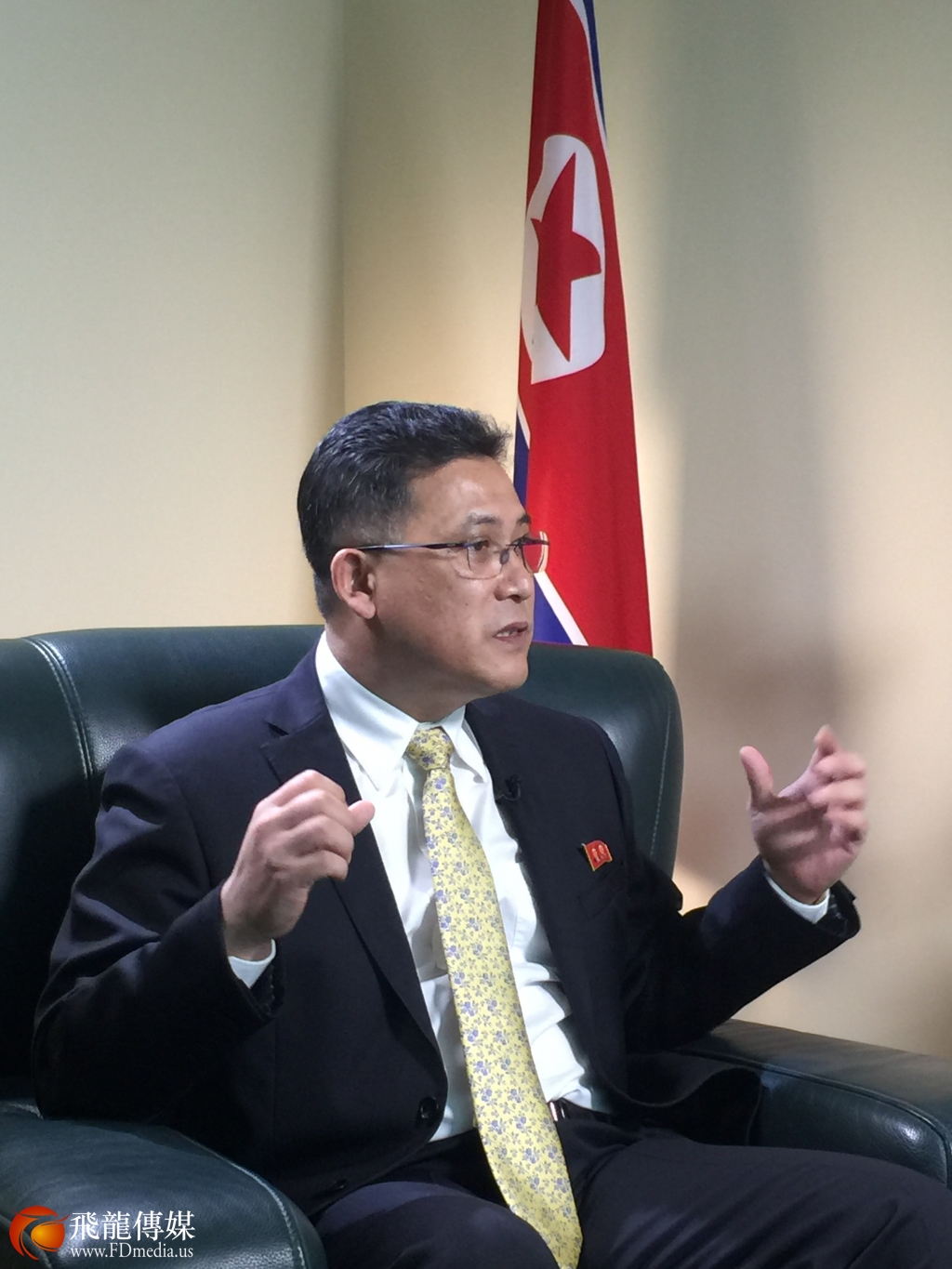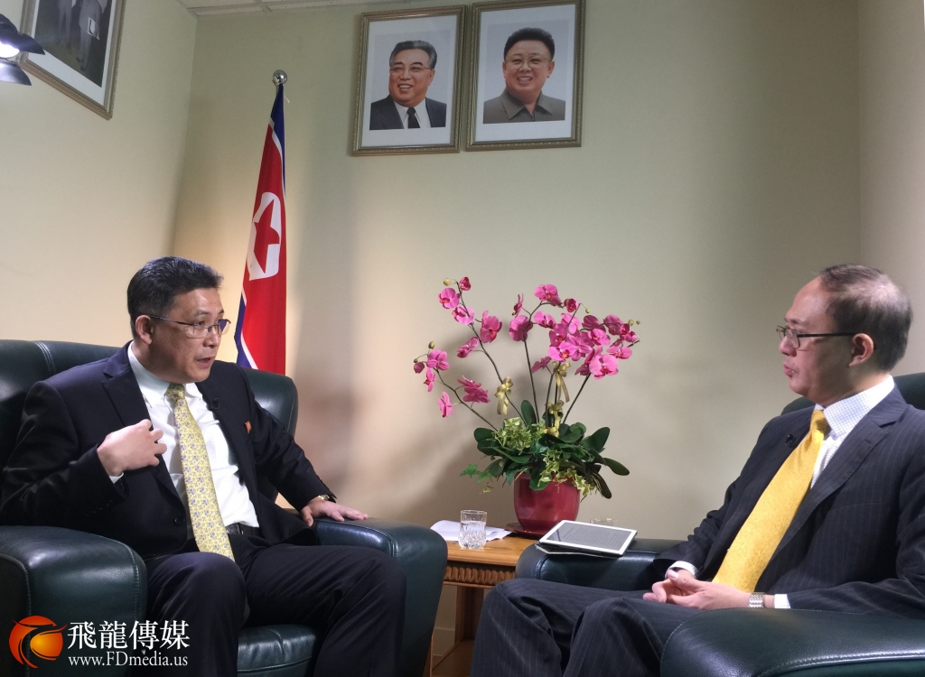 朝鲜驻香港总领事张成铁在朝鲜驻香港总领事馆内接受《震海听风录》主持人邱震海独家专访 (凤凰卫视 供图)