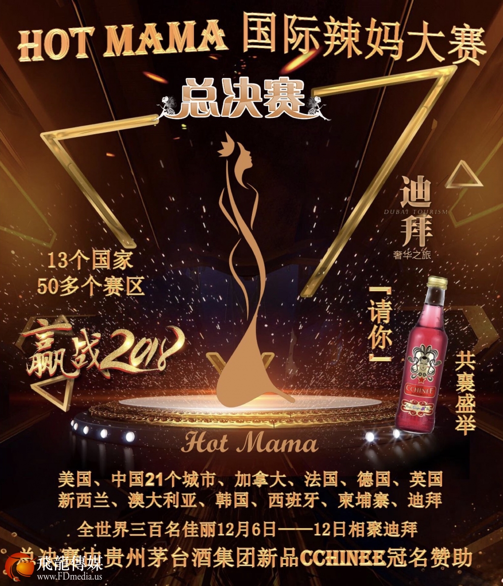 《2018 HOT MAMA》辣妈大赛原计划在全球6个国家设赛区,但今天,全世界10多个国家(美国、中国21个城市、加拿大、法国、德国、英国、新西兰、澳大利亚、韩国、西班牙、柬埔寨、迪拜)几十个赛区展开全球海选,参与国家还在不断增加中。这是Hot MaMa的无穷魅力!这是全球女性的盛会,《2018 HOT MAMA》预估全世界有几万名辣妈报名参赛,一展已婚女性美丽、自信、智慧与风采。2018年12月6日-12日在迪拜举行总决赛,各国赛区两组前三名获奖的优秀辣妈将会聚迪拜角逐 《2018 HOT MAMA》总决赛全球冠军,获得全球2018 Hot MaMa 国际辣妈大赛的辣妈佳丽将由美国大赛组委会报销迪拜行的机票(经济舱),我们为你打造一个向世界展示自信、风采和魅力的大舞台,就等你来!