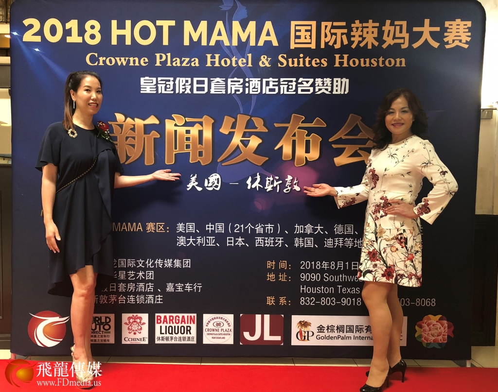 2018年8月1日晚7点,由美国飞龙国际文化传媒集团与休斯敦华星艺术团共同主办,皇冠假日酒店、嘉宝车行、休斯敦茅台连锁酒庄协办的《2018 HOT MAMA国际辣妈大赛》休斯敦美国新闻发布会,在皇冠假日套房酒店(Crowne Plaza Hotel & Suites Houston)圆满举行。