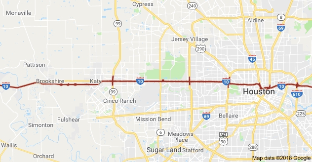 I-10高速哈里斯县路段位于最危险高速公路排名第五名