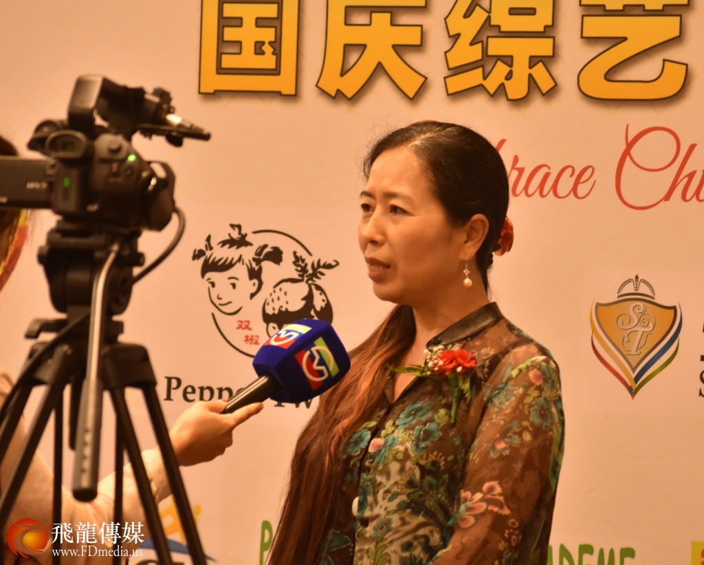 美国休斯敦华夏学人协会前会长罗雪梅在演出结束后接受记者的采访。