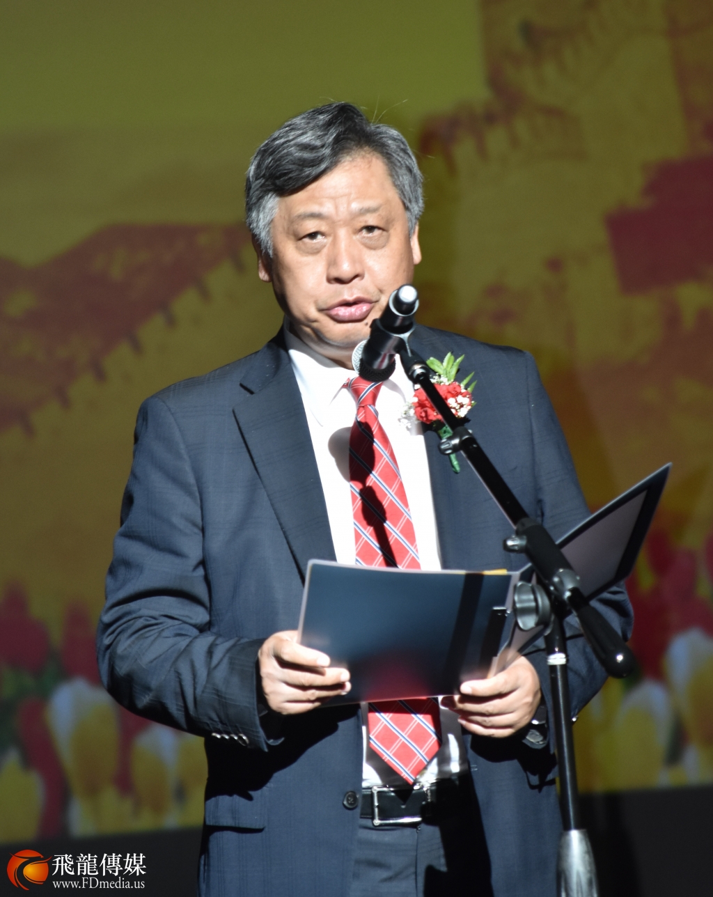 李强民总领事在演出前致辞,他说,“亲情中华”艺术团把祖国和家乡的祝福送到休斯敦,使美南地区的国庆系列活动更加多姿多彩。他希望侨胞们一如既往地支持祖国统一大业,为“两岸一家亲”发挥独特作用,为实现中华民族的伟大复兴贡献力量。