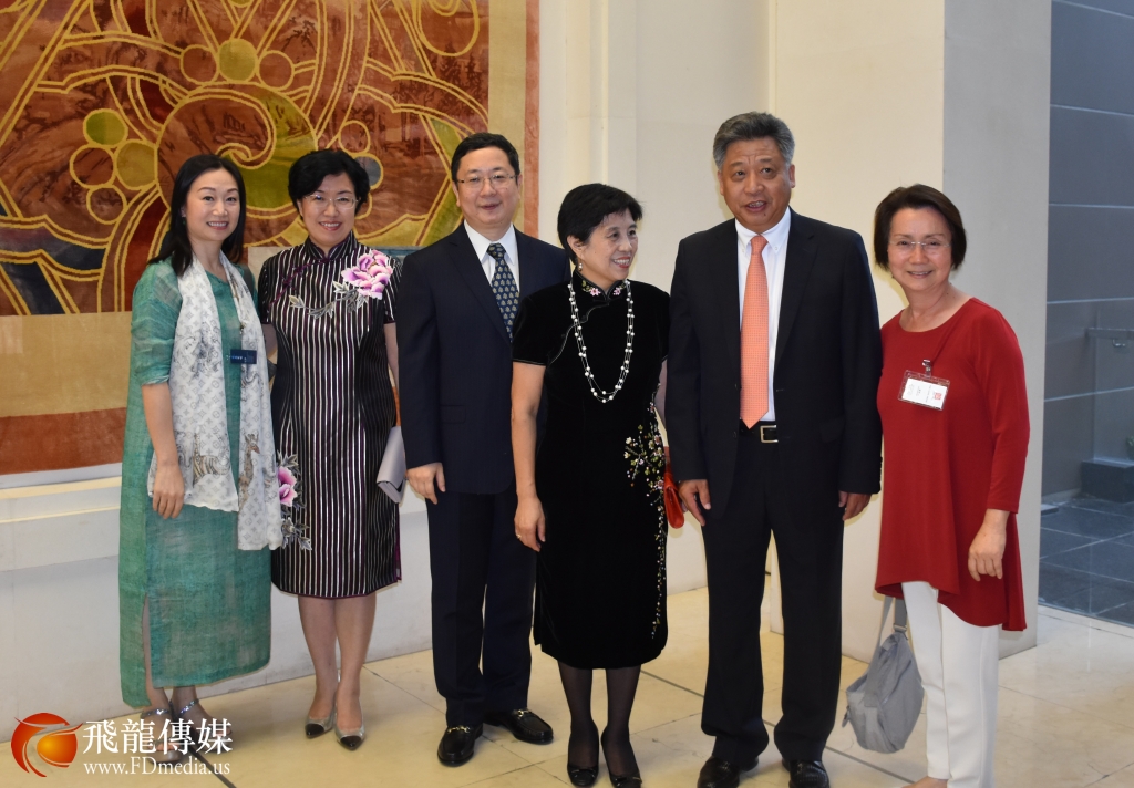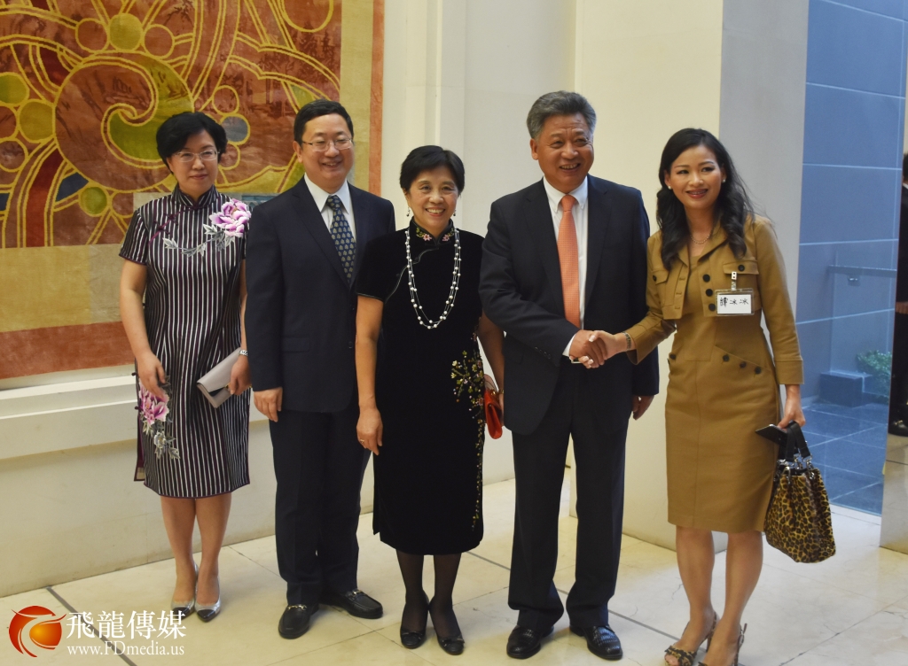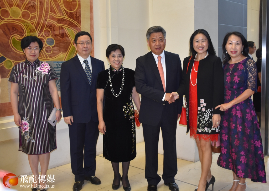 招待会开始前,李强民总领事携夫人曾红燕,及副总领事王昱、副总领事刘红梅在大堂迎接贵宾,一一握手并合影留念。