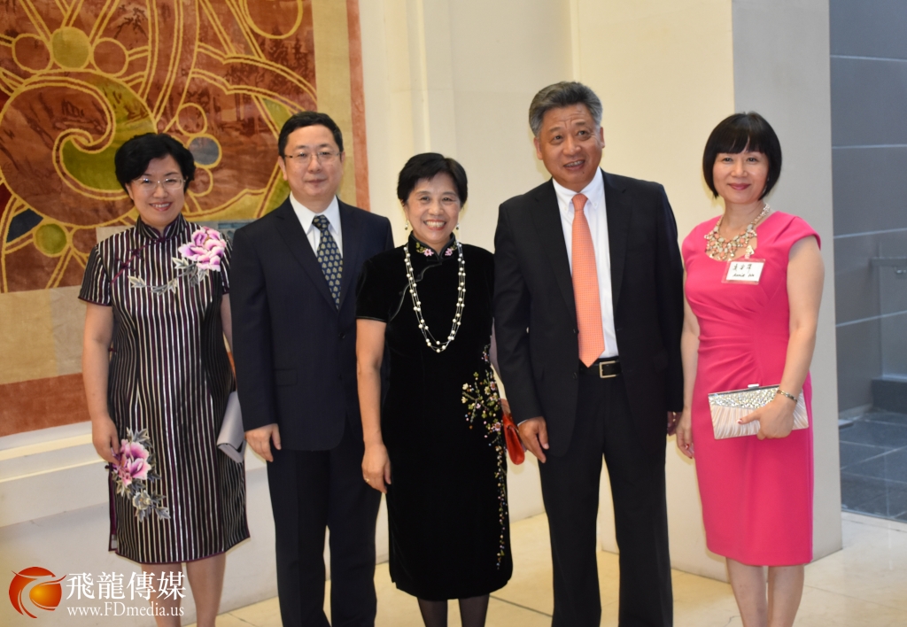 图左起:副总领事刘红梅、副总领事王昱、曾红燕女士、李强民总领事与布什家族代表尼尔·布什(Neil Bush)合影留念。