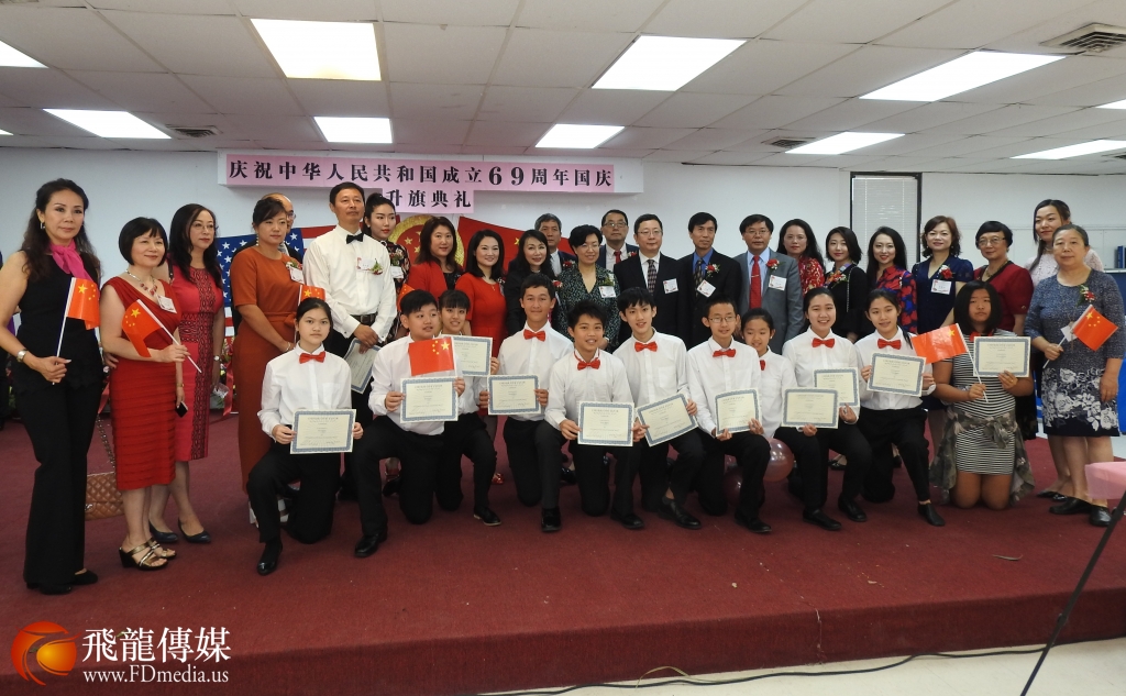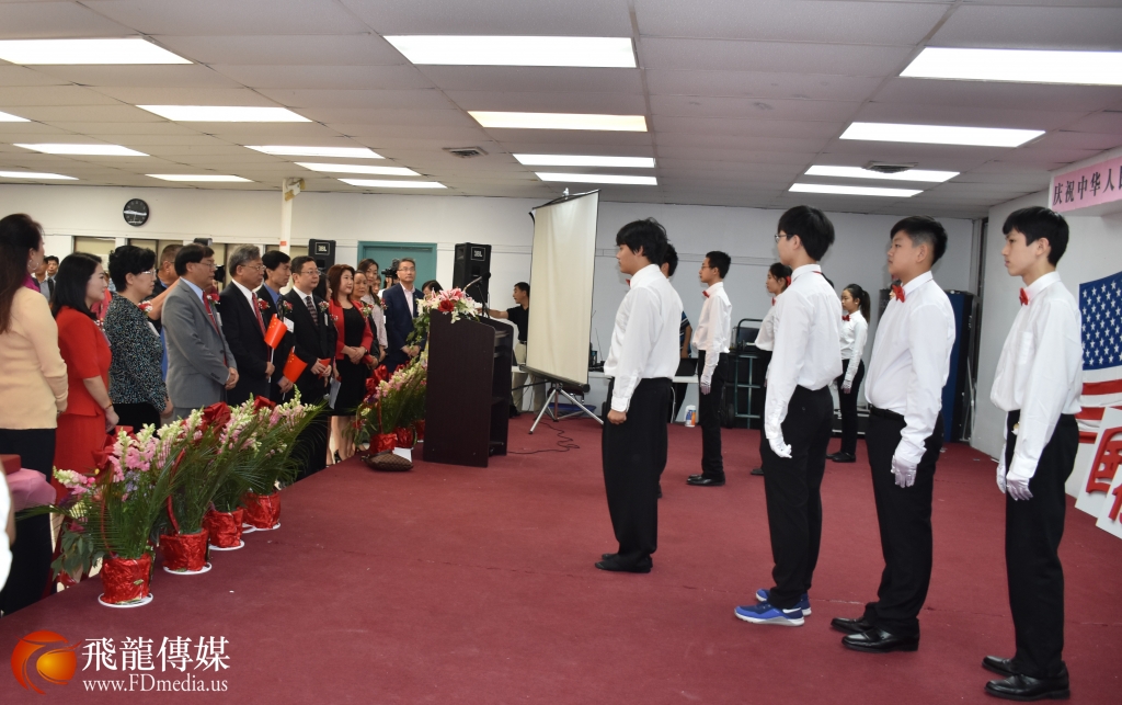 9月29日上午9点30分,休斯敦中国人活动中心活动大厅人山人海,锣鼓喧天。休斯敦侨界举行庆祝中华人民共和国成立69周年国庆升旗仪式。因为天气原因升旗仪式搬到了室内,就这样也没用减弱华侨华人对祖籍国的祝福和热爱,国庆升旗仪式在中国人活动中心大厅庄严举行。
