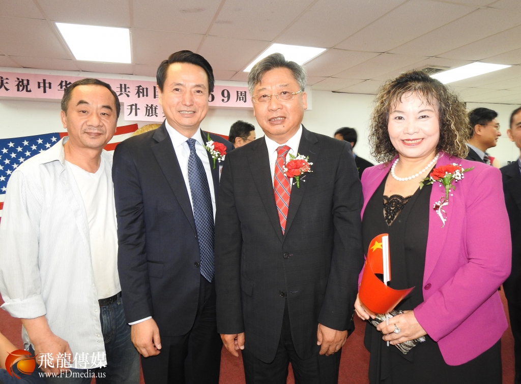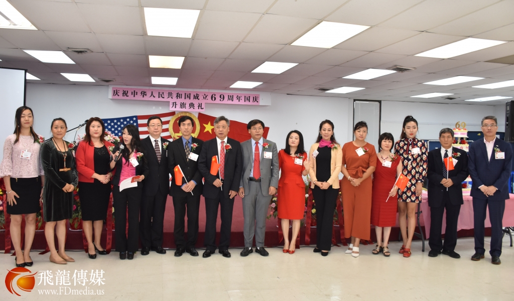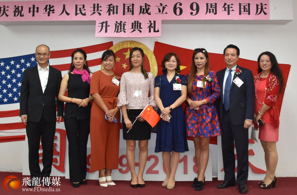 中国驻休斯敦总领馆李强民总领事、王昱副总领事、刘红梅副总领事以及总领馆全体外交官、以及来自大休斯敦地区华侨华人、留学生、中资机构、各社团负责人与300多位华侨华人一起参加升旗仪式。