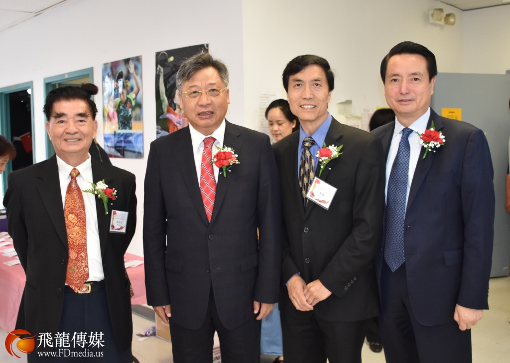 图左起:德州中国和平统一促进会副会长梁成运、中国驻休斯敦总领馆李强民总领事、中国人活动中心董事长靳敏、达拉斯中国和平统一促进会会长顾天鹏合影。