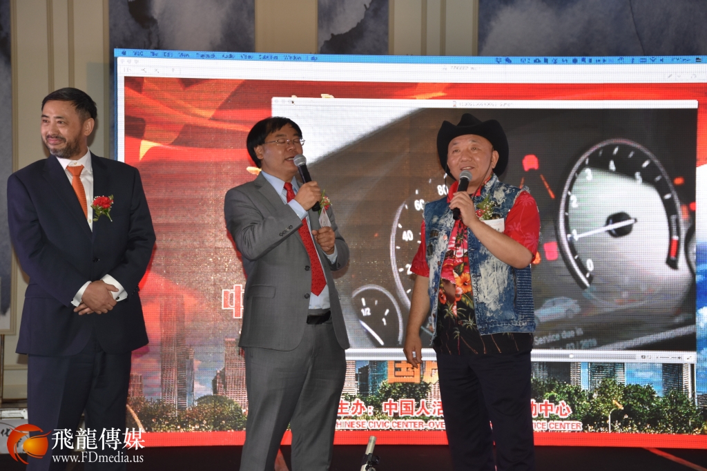 休斯敦嘉宝车行董事长徐宁波为国庆晚宴捐款捐物,车行捐出一部新款BMW车为晚宴筹款。