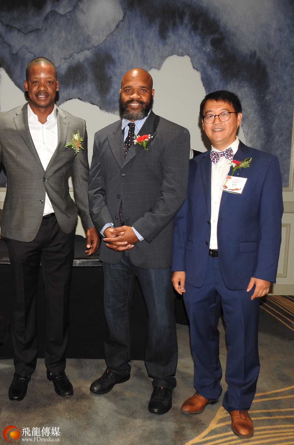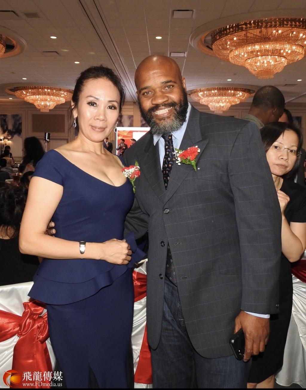 金棕榈国际有限公司是国庆晚宴的“翡翠”赞助商。董事长Tyler Rich、总裁谢晓兰(中)出席晚宴,并与江苏总会会长陈铁梅合影留念。