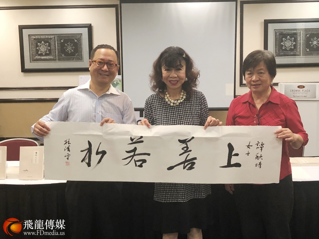 当天,谭秋晴与在场的侨领们联合发起华侨华人为斯坦福地区小学捐赠小学作文教课书,斯坦福市很多小学开设中文课,却缺乏小学中文教课书,谭女士呼吁华侨华人积极响应,把孩子用过的中文基础教课书捐出来,以帮助斯坦福学区的小朋友们学习中文,学好中文可以帮助他们的人生有更多的知识,同时,可以更多的了解中华文化的博大精深。