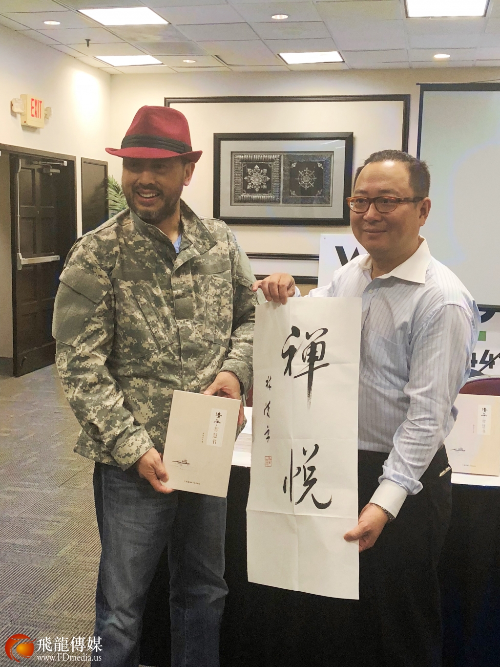 皇冠假日套房酒店、休斯敦阳光传奇高尔夫休闲山庄、休斯敦嘉宝车行集团公司董事长徐宁波(左)参加赠书活动。