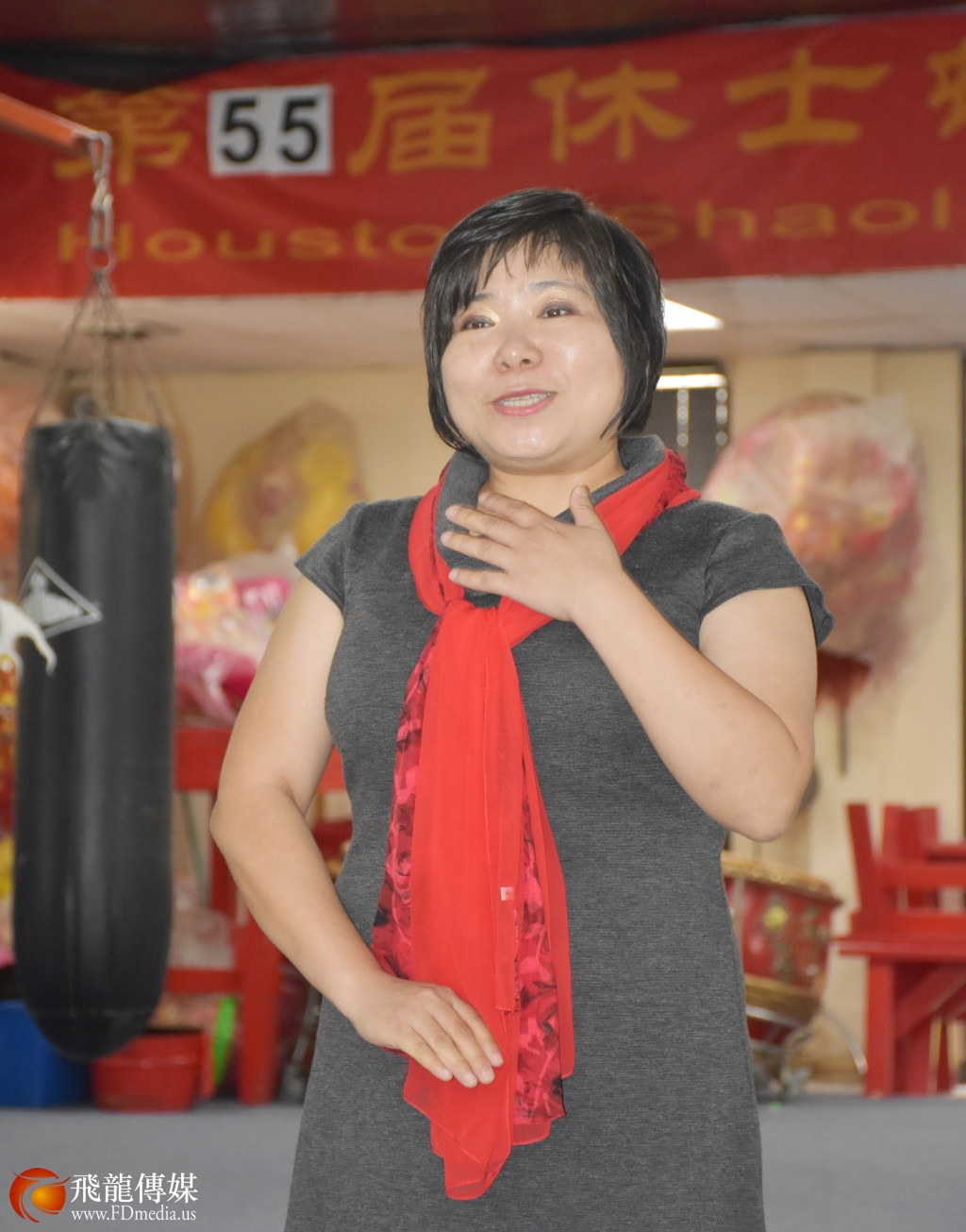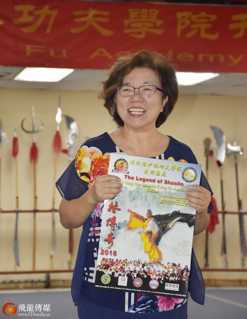 《少林传奇 2018》大型演出由休斯敦华星艺术团团长鲍玲担任导演,鲍玲在新闻发布会上预祝演出成功。