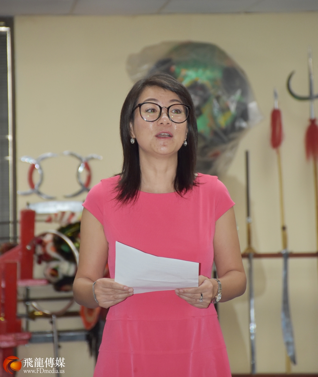 联邦众议员Pete Olsen亚裔代表张晶晶预祝演出成功!同时她还作为家长身分发言,因为她的女儿之前曾在释行浩少林功夫学院学习武术,她对学院有深深的感激之情。她表示,学院不仅仅教授武术,还教会学生许多做人的基本道理。