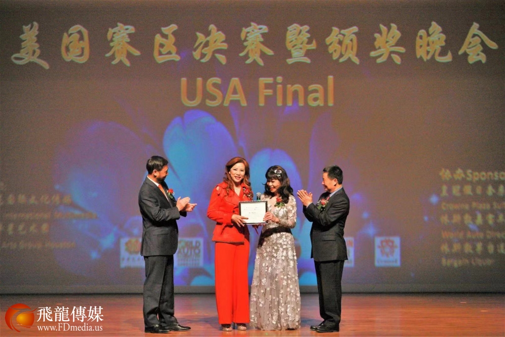 美国国会议员希拉.杰克森.李亚 裔代表罗玲送来国会议员为大赛颁发的褒奖状,由Hot MAMA创始人陈铁梅受领。