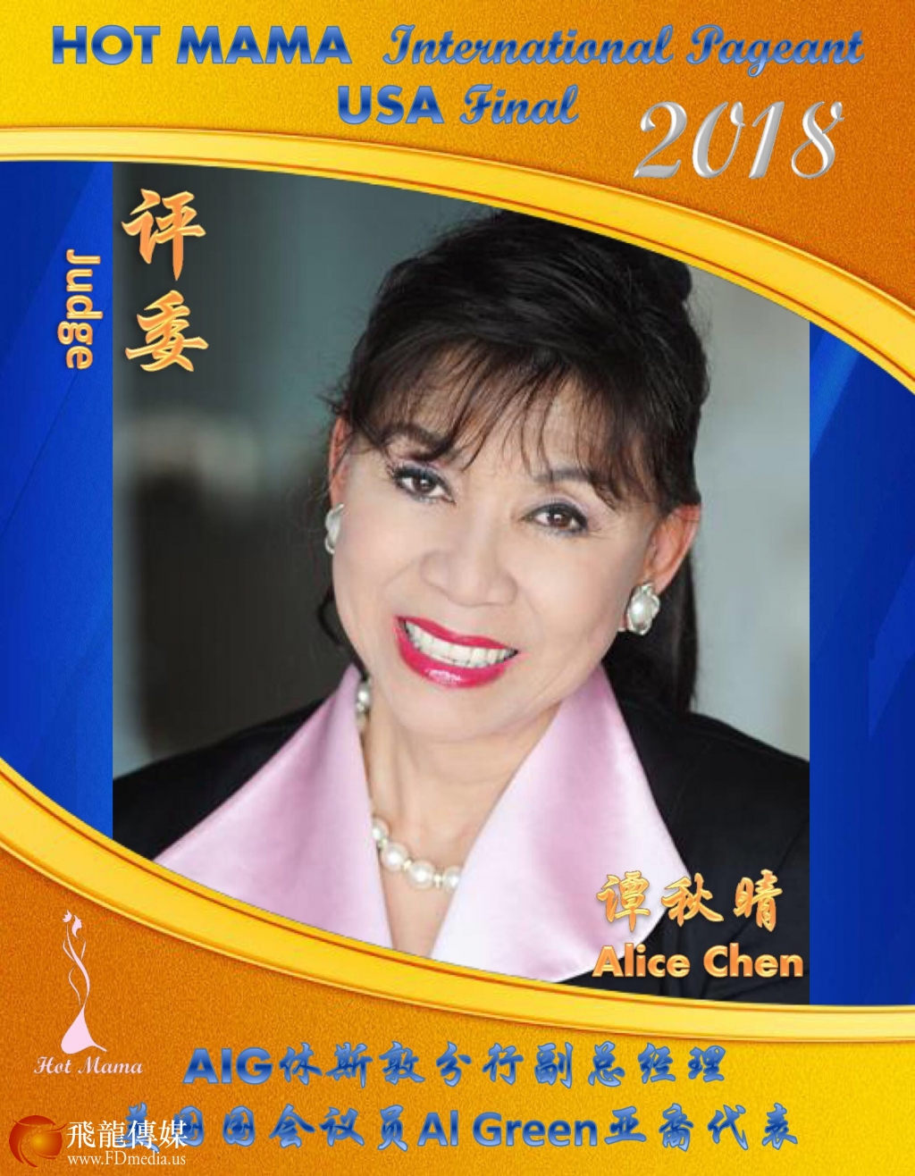 评委 谭秋晴:美国国会议员Al Green亚裔代表,华裔杰出女企业家,休斯敦知名人士。