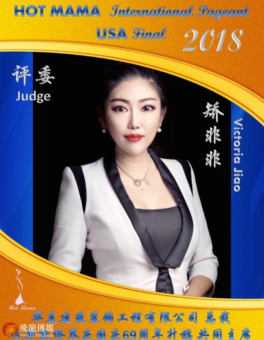 评委 Victoria 矫:休斯敦华美建筑装饰工程有限公司总裁,在休斯顿承建各种商业中心,超市,餐馆,医疗中心及其他商业装饰工程项目。特别爱好唱歌、表演,是活跃在休斯敦文艺界年轻的歌手,曾获得“中国新歌声”休斯敦赛区前四名的好成绩。