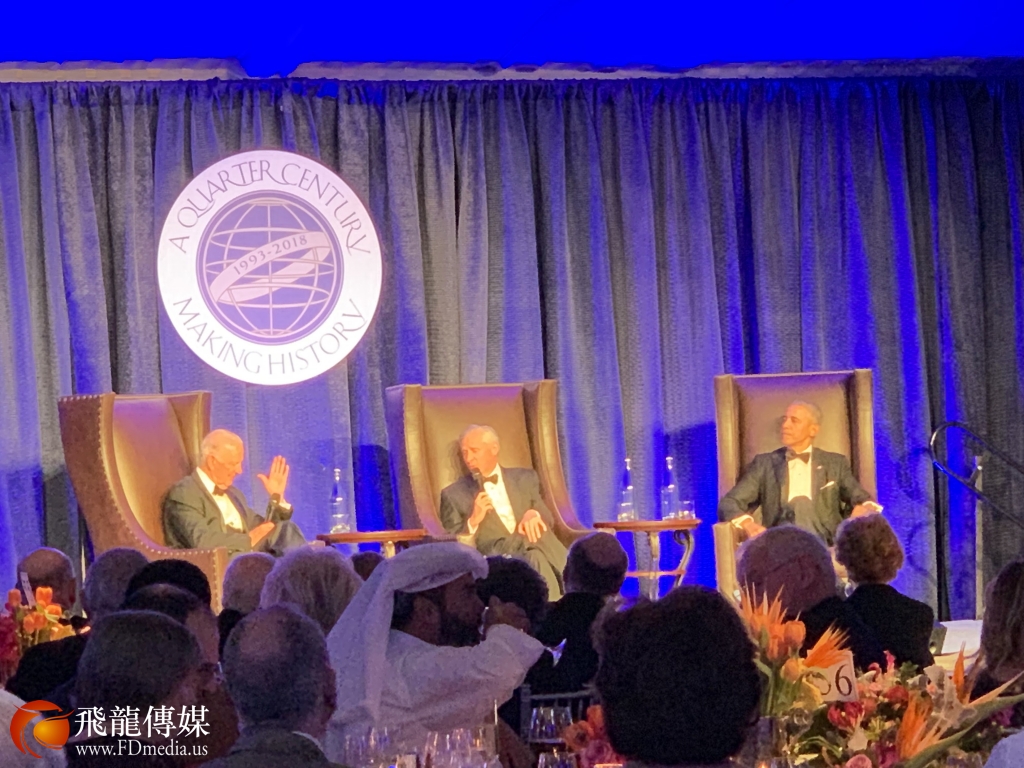 美国前总统奥巴马于2018年11月27日亲临休斯顿,出席休斯顿莱斯大学贝克公共政治学院的“25周年庆典晚宴”。
