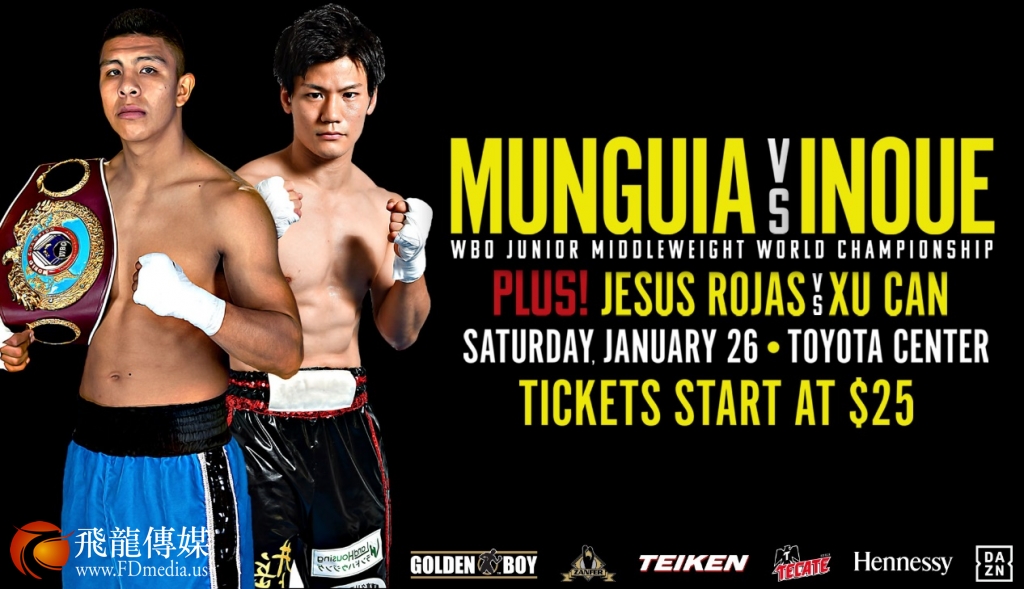 比赛当晚共有两场世界金腰带的对决。除徐灿和罗哈斯的比赛外,墨西哥裔WBO超轻中量级拳王蒙圭亚,将迎来日本拳手井上岳志的挑战。目前,赛事门票已经开售,拳迷可以在休斯敦丰田中心官网(http://www.houstontoyotacenter.com/events/detail/munguia-vs-inoue)、丰田中心售票处或电话购买(866-446-8849)。