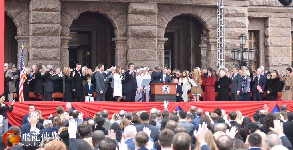 格雷格·阿博特州长说;我们今天聚集的不仅仅是就职典礼。 今天是变革会议的曙光,将迎来一个新的时代。 儿童,教师和纳税人的新时代。他介绍了他的团队,议长Bonnen,副州长Patrick,以及众议院和参议院的所有成员。我们绝不能忘记,在美国军队服役的男人和女人,因为有他们的付出,我们才有建立更好的德克萨斯州的自由。 他让现场穿製服的军人,站起来挥挥手,并鼓掌向他们表示感谢。