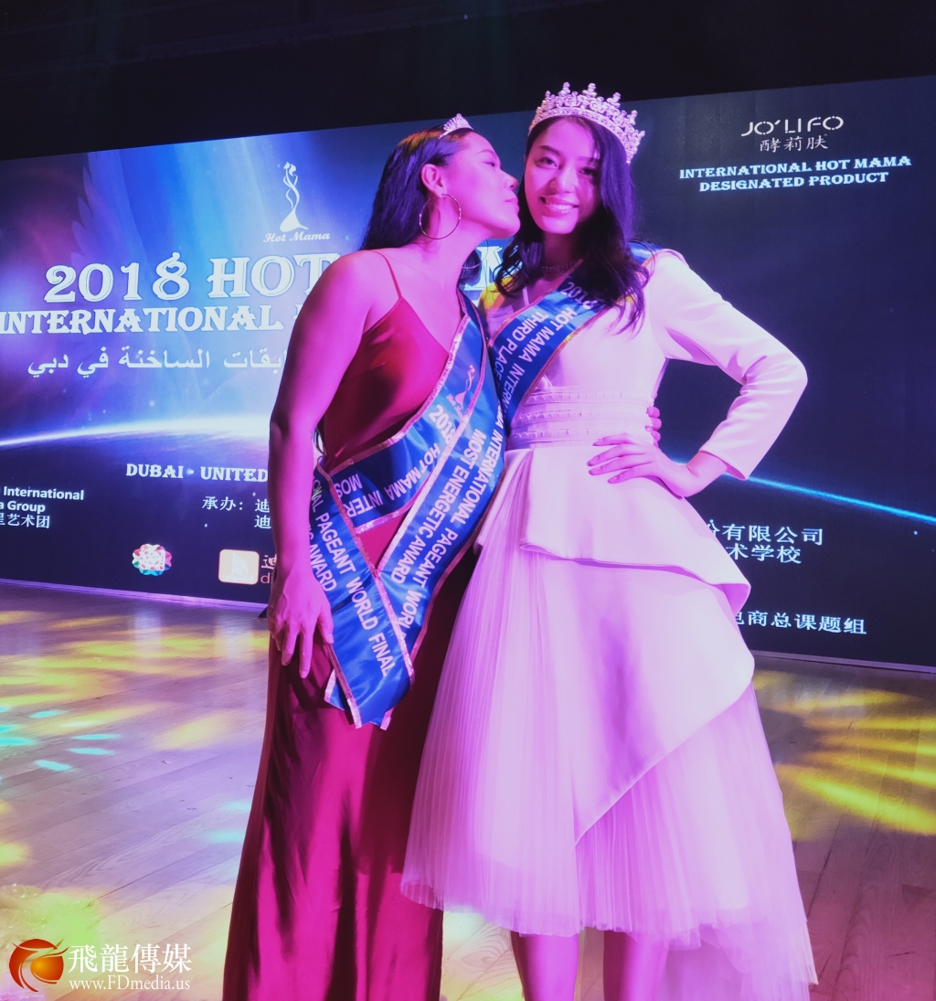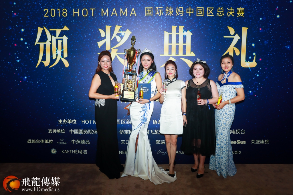 Hot MaMa中国赛区决赛获得冠军,Hot MaMa创始人、全球主席陈铁梅女士(图左)亲自为她颁奖。
