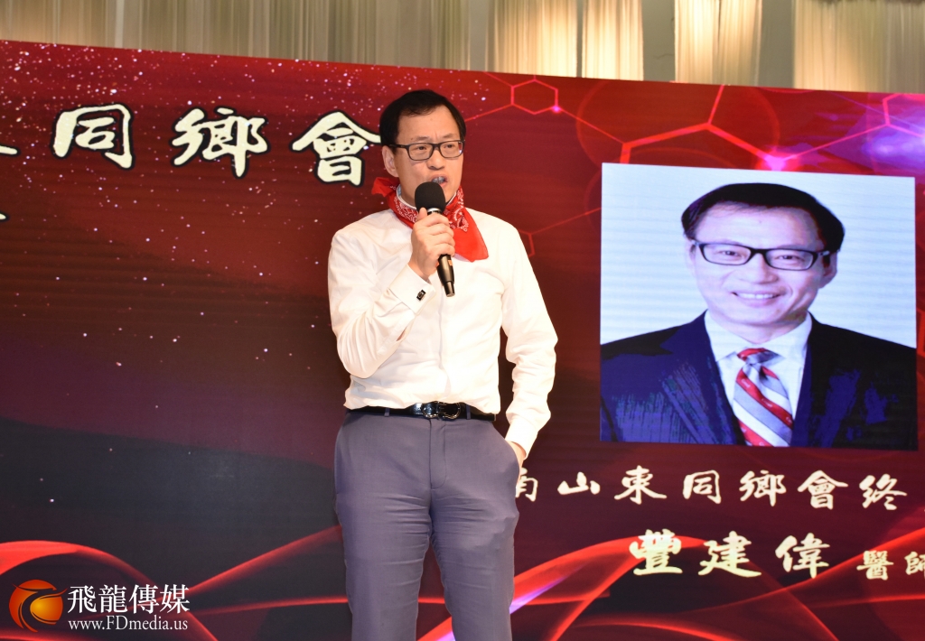 美南山东同乡会终生荣誉会长丰建伟致辞。