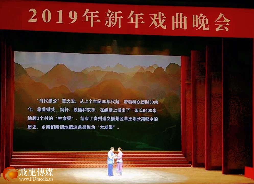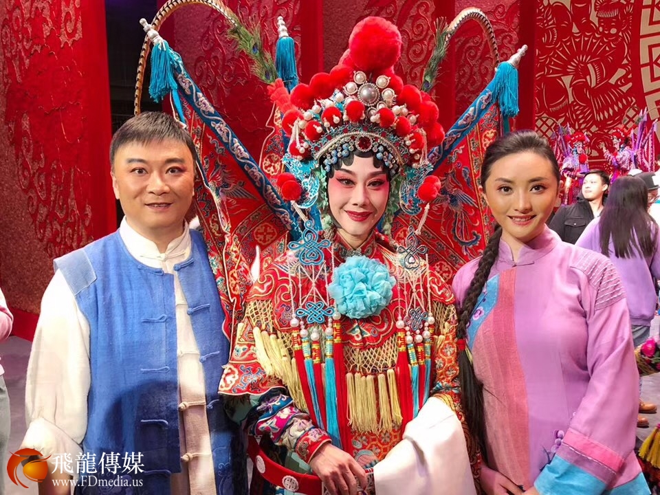 顿夏夏(右1)在2019年新年戏曲晚会现场