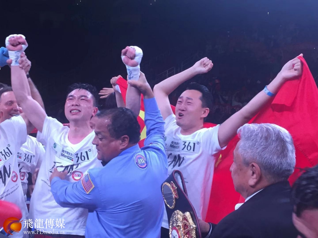 徐灿获得金腰带后,休斯敦华人拉拉队欢呼。